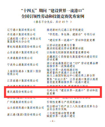 喜 报!化码公司和万州港苏商公司卸船机班组获得中国海员建设工会“十四五”期间“建设世界一流港口”全国引领性劳动和技能竞赛荣誉